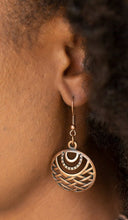 Necklace - "On The MANE Stage": Featuring crisscrossed detail, dainty copper frames link below the collar, giving way to a dramatic half-moon plate radiating with airy tribal details for a fierce look. Features an adjustable clasp closure. Includes one pair of matching earrings.